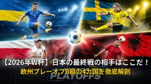 グループ最後の1枠は、2026年3月に行われる欧州プレーオフBの勝者となります。ウクライナ、スウェーデン、ポーランド、アルバニア。いずれも欧州の舞台で鎬を削る実力国であり、どの国が勝ち上がってきても日本にとって厳しい相手となることは間違いありません。